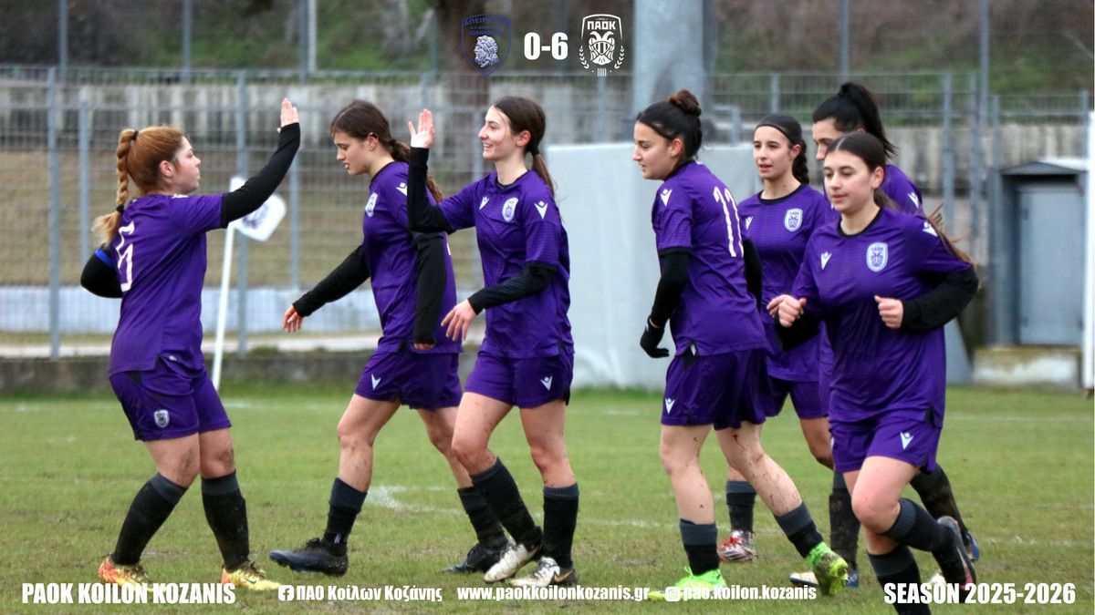 Με νίκη επέστρεψε στην αγωνιστική δράση η Γυναικεία Ομάδα του ΠΑΟΚ Κοίλων Κοζάνης, επικρατώντας εκτός έδρας του Απειρωτάν με το εμφατικό 0-6, για την 14η αγωνιστική της Γ’ Εθνικής Κατηγορίας.