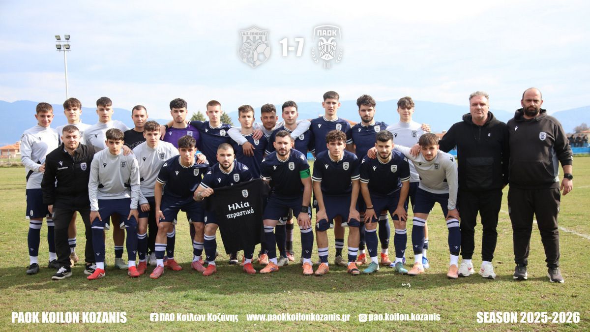 Εκτός έδρας νίκη για το Ανδρικό Τμήμα του ΠΑΟΚ Κοίλων Κοζάνης, που επικράτησε με το εντυπωσιακό 1-7 απέναντι στον Ιωνικό Βαθυλάκκου, για την 21η αγωνιστική της Α’ Κατηγορίας ΕΠΣ Κοζάνης.